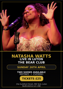Natasha Watts, a mesmerising vocalist and songwriter, has captivated audiences worldwide with her enchanting blend of soul, jazz, and R&B. With a career spanning over a decade, Watts has established herself as a true powerhouse in the music industry and we’re thrilled to welcome her back to The Bear Club.